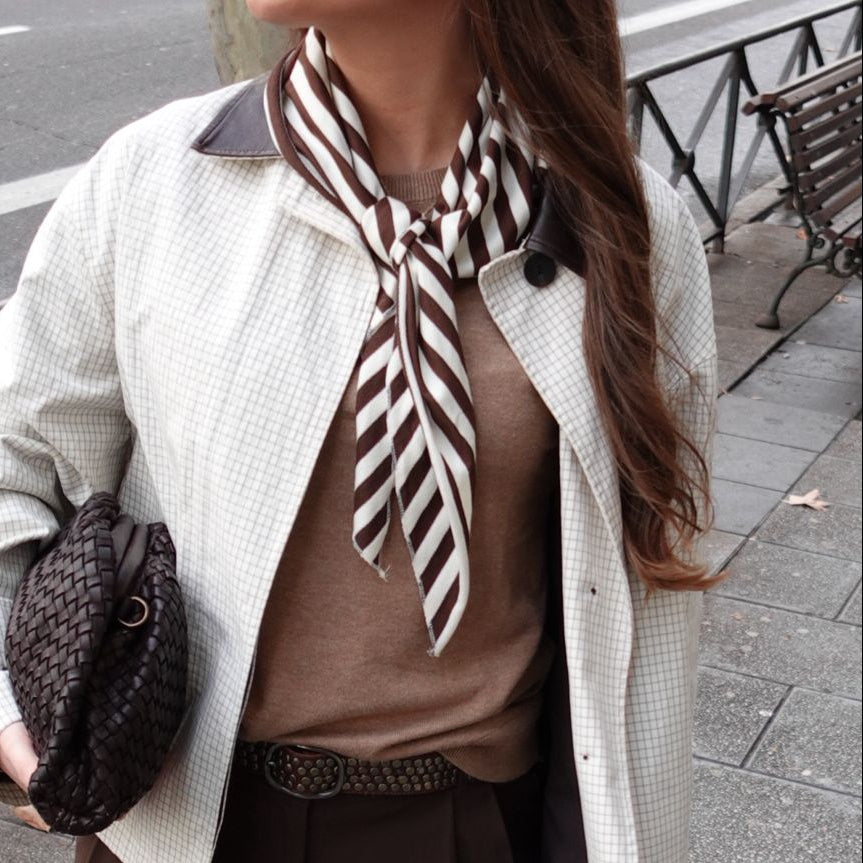Bandana rayas marrón y crudo. Un accesorio que mejora cualquier look.